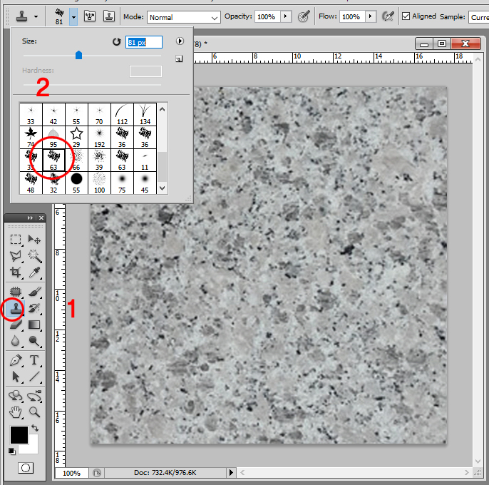 이때 브러시 모양은 원형이 아닌 조금 거친 모양으로 해야 돌 같은 경우 더 자연스럽게 됩니다.