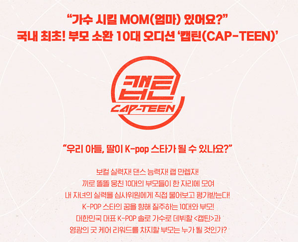 새로운 오디션 프로그램 제목은 캡틴(cap-teen)입니다.